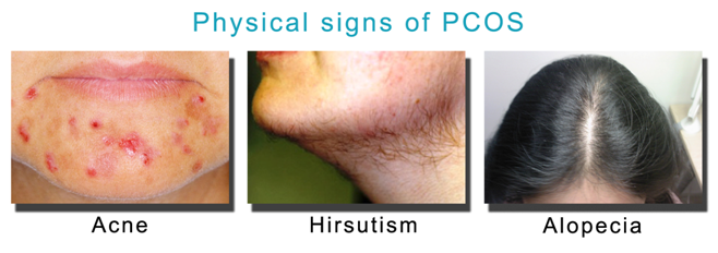 PCOS is a hormonal disorder common among women of reproductive age. It has many changes related to skin, including hirsutism, acne vulgaris, and alopecia.